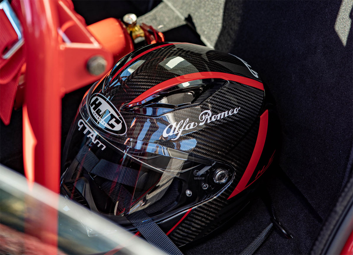 HJC Carbon helmet with matching decals for track day use